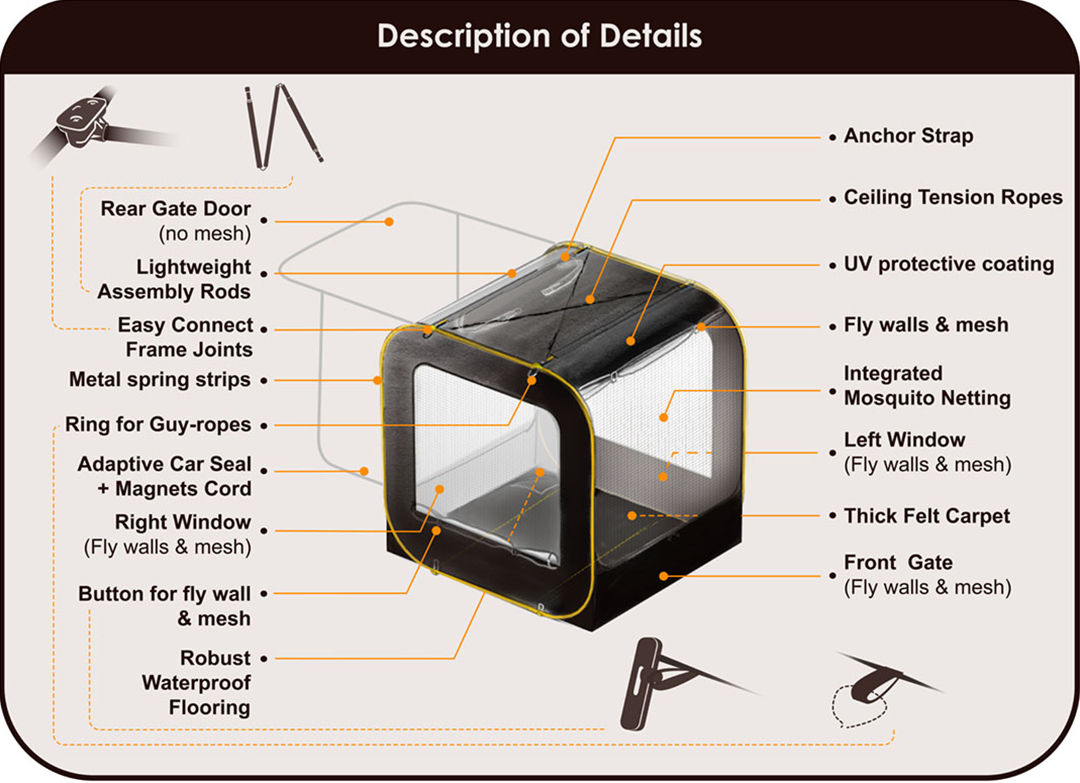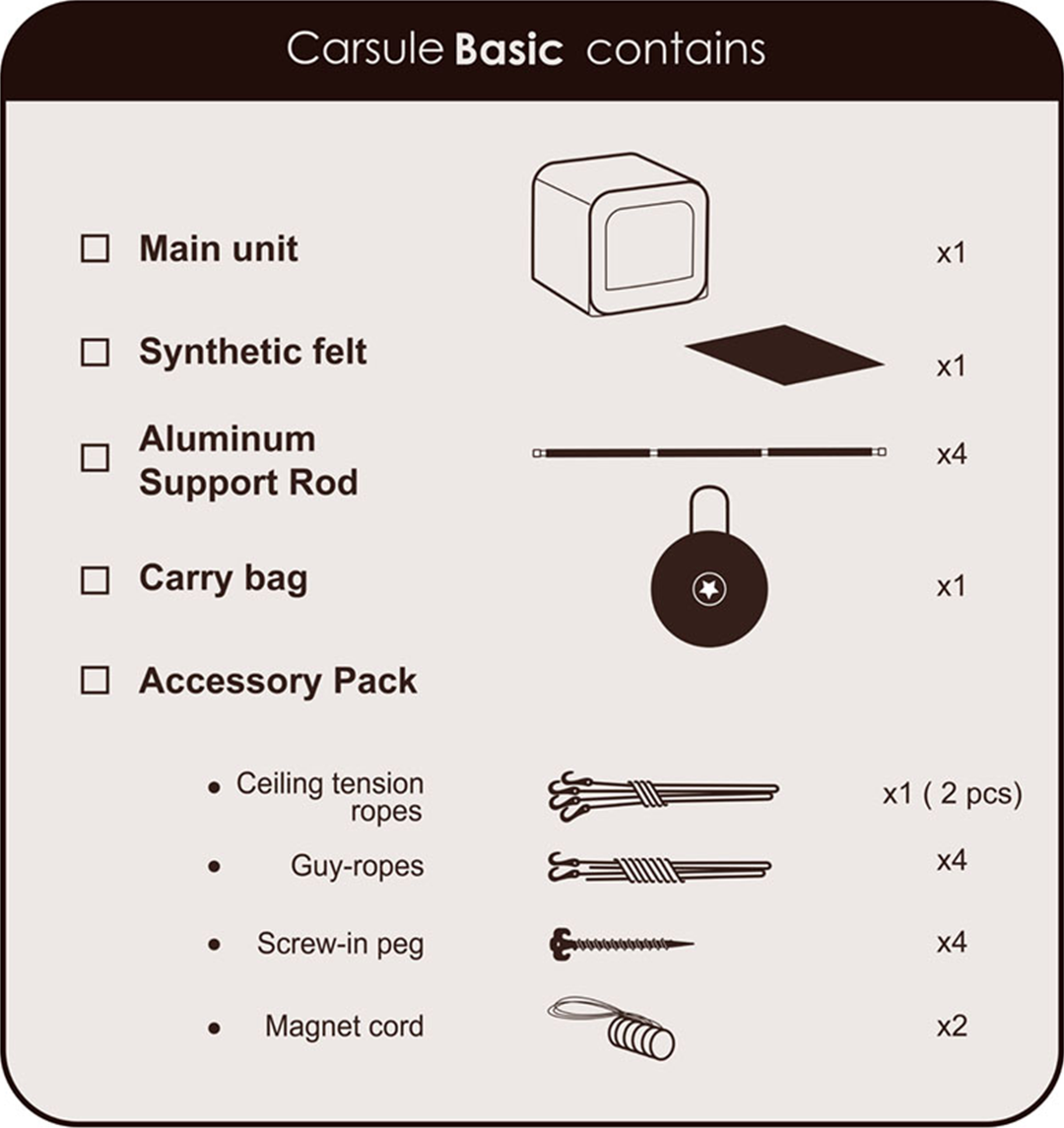 - Basic Contains:Main unit*1、Synthetic felt*1、Aluminum Support Rod*4、Carry bag*1